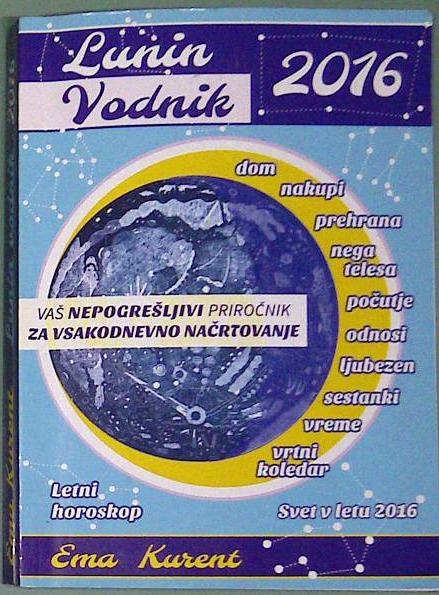 Knjiga je vodnik za leto 2016, ki temelji na luninem koledarju in astrologiji. Ponuja nasvete za vsak mesec, kako najbolje izkoristiti vpliv lune na različna področja življenja, kot so zdravje, odnosi, kariera in osebna rast. Avtorica Ema Kurent vključuje tudi praktične napotke za vsakodnevno življenje, rituale in meditacije, ki so povezane z luninimi fazami, ter astrološke napovedi, ki pomagajo bralcem bolje razumeti in uskladiti se z naravnimi cikli. Vodnik je zasnovan kot pripomoček za osebno rast in harmonijo skozi leto.